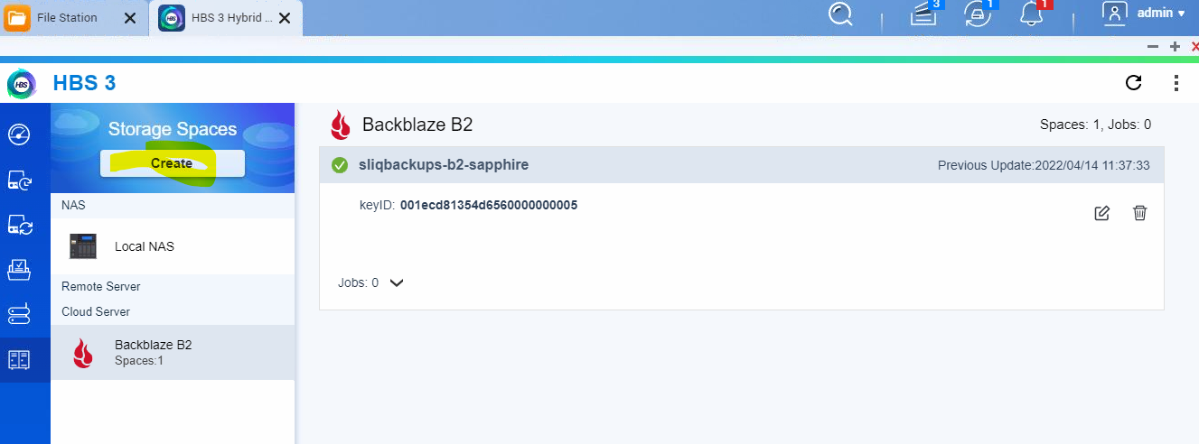 6- Copy and paste the keyNname and the keyID number that you see in that box to the HBS3 app box on the NAS.