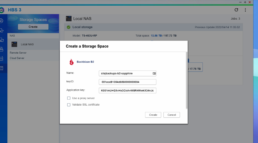 How to create connection to Backblaze cloud backup service in HBS 3 app on NAS: